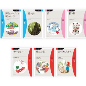 Besides still including many fictional and non-fictional books, this series focuses more on fairy tales and folk lore stories especially for their level 2 and 3 reading material. Their non-fiction books consist largely of travel guides and historical facts about those places, like 屋久島 (level 0) or 奈良の大仏 (level 4).