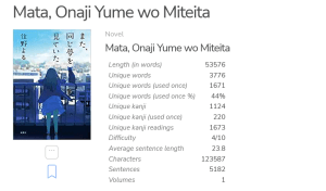 This book is by the same author as the novel 「君の膵臓をたべたい」which I also found quite easy to read. You can read a sample of 「また、同じ夢を見ていた」 here.