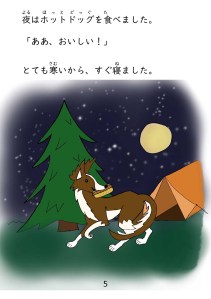 The story uses a basic vocabulary with only one slightly more uncommon word per page. Combined with the pictures and the simple grammar it’s fairly easy to understand everything in this book with a reading comprehension around N5.