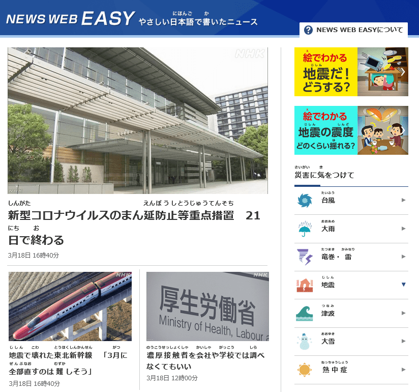 - Yasashii Asahi – news articles by the newspaper Asahi Shinbun, a bit easier than NHK Easy News